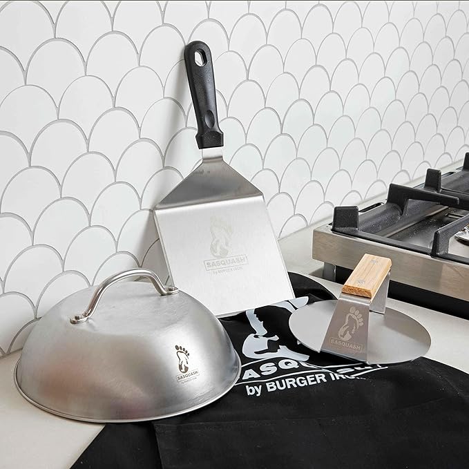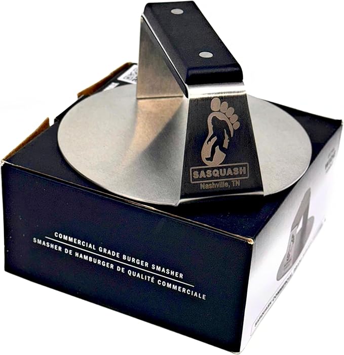 The Sasquash - 6" Heavy Duty Extra Wide Flat Handle Smashed Burger Press - Commercial Grade Welded Stainless Steel Burger Smasher (6 Inch 'Indestructo' Press)
