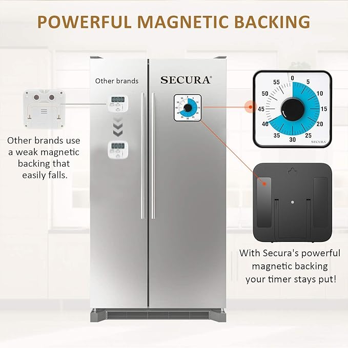 Secura 60-Minute Visual Countdown Timer, 7.5-Inch Oversize Classroom Visual Timer for Kids and Adults, Durable Mechanical Kitchen Timer Clock with Magnetic Backing (Blue)