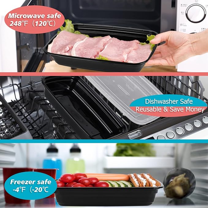 - SAFE: Disposable meal prep containers is microwaves, dishwasher, refrigerator available, these lunch boxes are made of high quality materials, BPA-free, can withstand temperatures from -20 ° C to 120 ° C(-4℉ to 248℉), making your meal plan and weight loss plan high Efficiency is carried out.