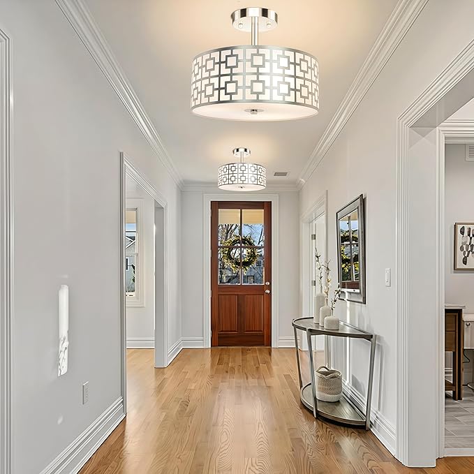 - Versatile Semi-Flush Mount Ceiling Light: Perfect for rooms with lower ceilings, this brushed nickel semi flush mount ceiling light sits closer to the ceiling than traditional chandeliers. Its sleek design complements various styles, from modern to traditional, seamlessly fitting into different décor themes. Ideal for any area, this ceiling light fixture enhances your home’s overall look