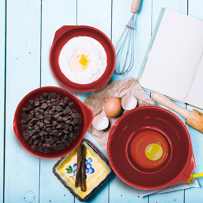- EMBEDDED POUR SPOUTS – Each bowl is designed with a pour spout on one end and a lip on the other end for easy handling. Perfect for trained chefs, bakers and beginners alike, these bowls make it easy to mix, stir and pour batters or sauces.