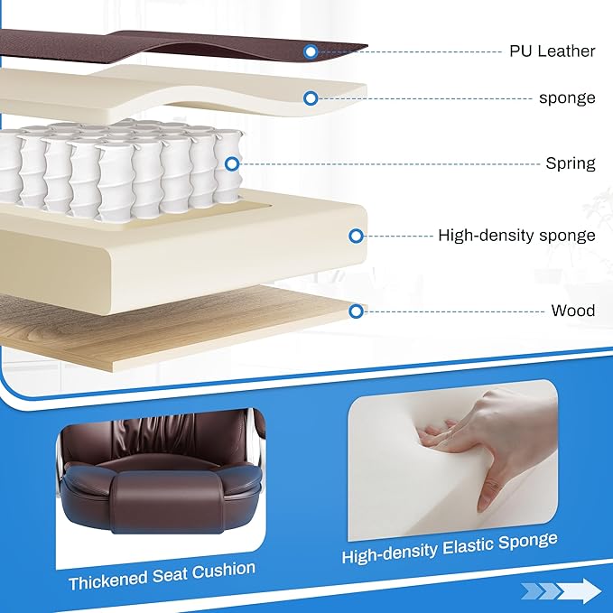 - Ergonomic and Elegant Design: It offers back and lumbar support, butt and thigh support, as its contour shaped design, help reduce pressure and fatigue feeling during long periods of working. The soft curved lines, match smooth leather and fine stitching, classic and elegant for every home and office.