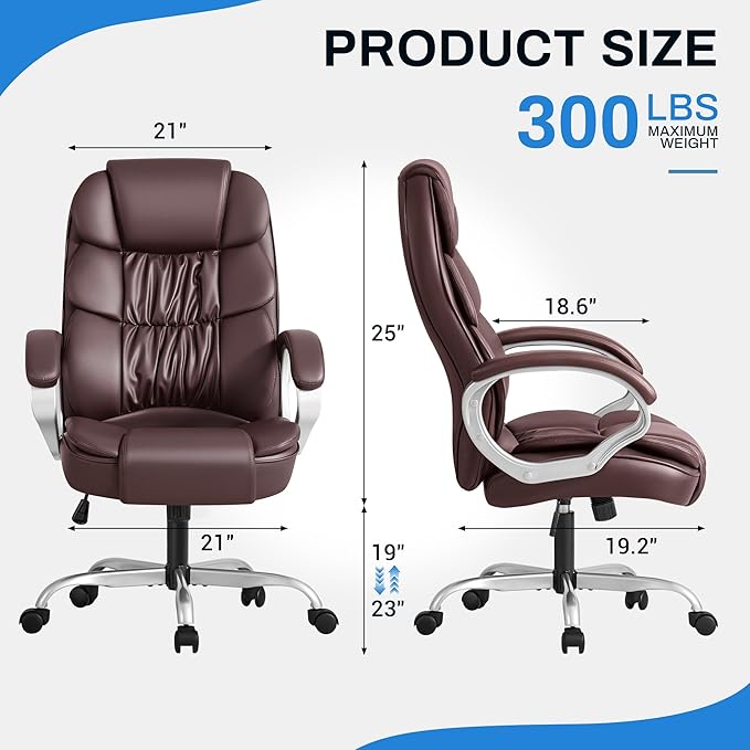 Furmax Leather High Back Office Chair Ergonomic Executive Office Chair Swivel Computer Desk Chair Lumbar Support Soft Cushioned Padded Arms (Brown)