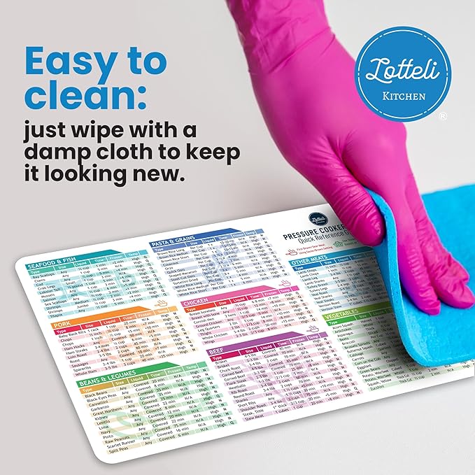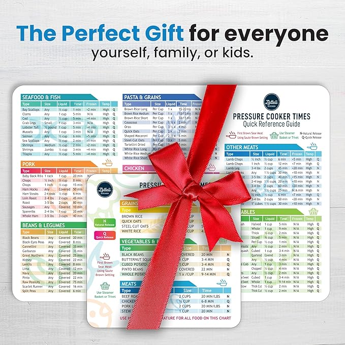 - No More Guessing Cooking Times – The Lotteli Kitchen instant pot cheat sheet contains cooking time and liquid ratio for over 100 common foods. With our pressure cooker accessories / ninja foodi accessories, you don't have to scramble through instructions or search on the Internet anymore, saving you a lot of time.