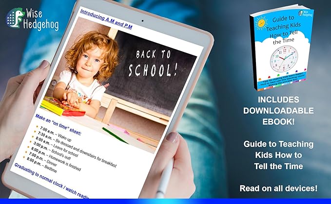 - CLEARLY MARKED, COLORFUL, AND EASY TO READ - Our math clock also comes with a free ebook all about teaching kids how to tell the time faster and easier. Size: 10 inches. Great guide for parents and teachers.
