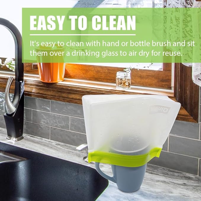 - REUSABLE FOOD GRADE MATERIAL & EASY TO CLEAN: Made of food-grade PEVA material, Qinline reusable storage bags are non-toxic, save our planet and save your money. We recommend HAND WASH, for the dishwasher will damage the double closure of the food storage bags. It is easy to clean with the bottle brush and put the bags on the top of a mug or cup to air dry. Using Qinline reusable non-toxic storage bags to save our planet and save your money