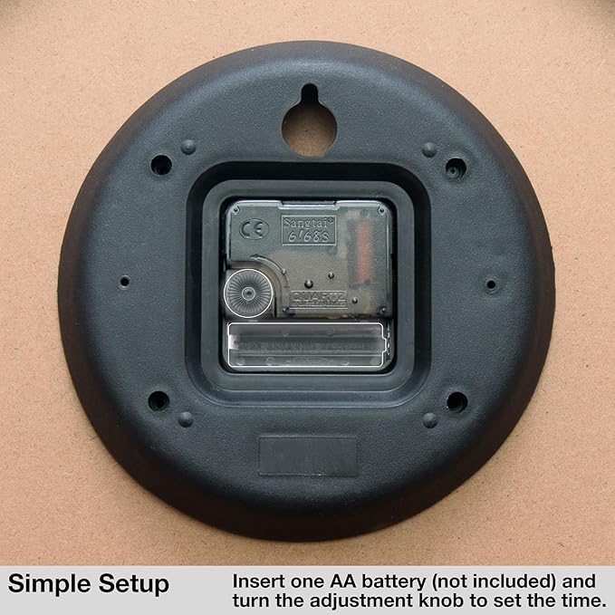 - Precise, Queit, & Non Ticking - Precision battery operated quartz analog sweep inner movement mechanism quietly maintains the precise time. It requires just a single AA battery to run long-term (not included).