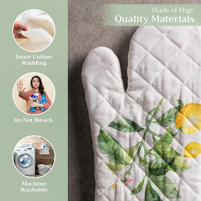 Maison d' Hermine Oven Gloves 100% Cotton Oven Mitt 7" x 13" with Loop Heat Resistant, BBQ, Cooking Gloves, Baking, Grilling, Kitchen, Handling Hot Pans Spring/Summer (Pack of 1, Limoncello)