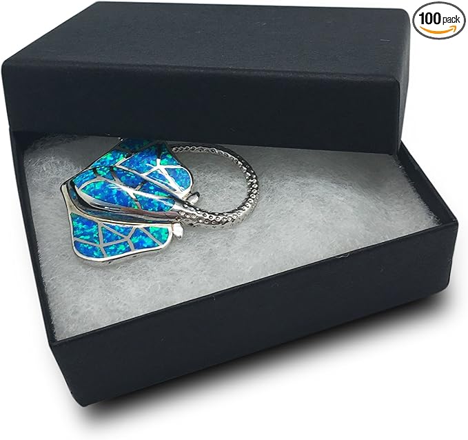 TheDisplayGuys - 100-Pack #32 Cotton Filled Cardboard Paper Jewelry Boxes Gift Case - Matte Black (3.3" x 2.3" x 1.0") - for Shipping or Storage
