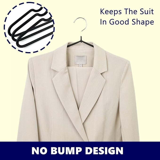 - 【No Bump Design】The super non-slip rubber coating keeps your clothes in natural shape without shoulder bump and prevents slipping or falling down, great for hanging jackets, pants, shirts, dresses, and more, strong enough for hanging heavy coat.