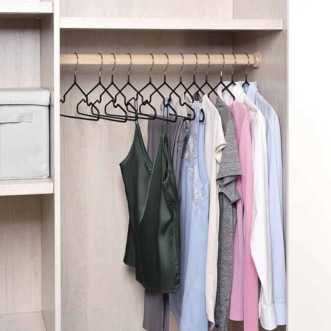 - 【No Sticking & Anti-slip】Special upgrade anti-slip PVC plastic coated with matte black, feels smoother and more comfortable, and has no stickiness but can prevent the clothes from failing off. The special shoulder groove design prevents clothing from falling, great for hanging camisoles and tanks.