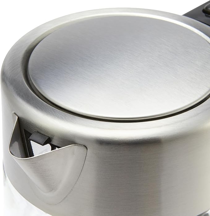 Amazon Basics Electric Kettle with Glass Carafe for Tea and Coffee, BPA-Free, Fast Boiling, Auto Shut-Off, 1.1 Quarts, 1500W, Glass and Steel