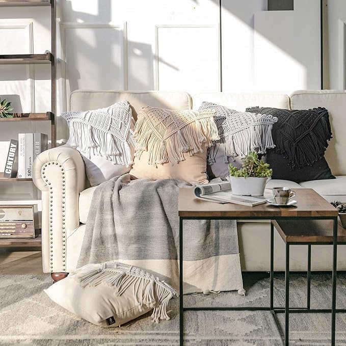 - 【Elegant Woven Craftsmanship】Hand-woven pillowcases are made of soft, breathable cotton and feature intricate hand-woven textures and playful fringe details. Bringing an organic touch and artistic flair to your space, it highlights the beauty of craftsmanship while adding comfort and natural elegance to modern interiors.