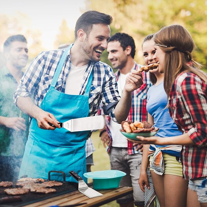 - Professional quality - spatulas are good for use by professional chefs and bakers in restaurants and food shops as well as griddle grill accessories set for your home kitchen or backyard barbecue . Great for use as pancake turner , fish turner spatula , griddle spatula , kitchen spatula, bench scraper .
