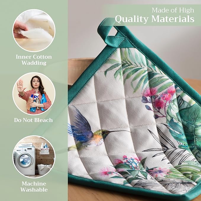 • 100% Quilted cotton: Made from premium quilted cotton, our pot holder ensures safe handling of hot pans or dishes. The soft, durable build provides excellent heat resistance and grip—perfect for everyday cooking and baking needs