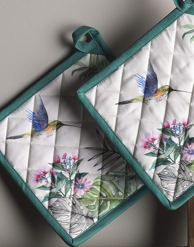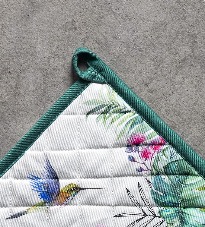 Maison d' Hermine Pot Holders Set 100% Cotton Heat Resistant Potholders 8" x 8" Hot Pads with Loop BBQ, Cooking, Baking, Grilling, Kitchen, Handling Hot Pans Spring/Summer (Pack of 2, Tropiques)