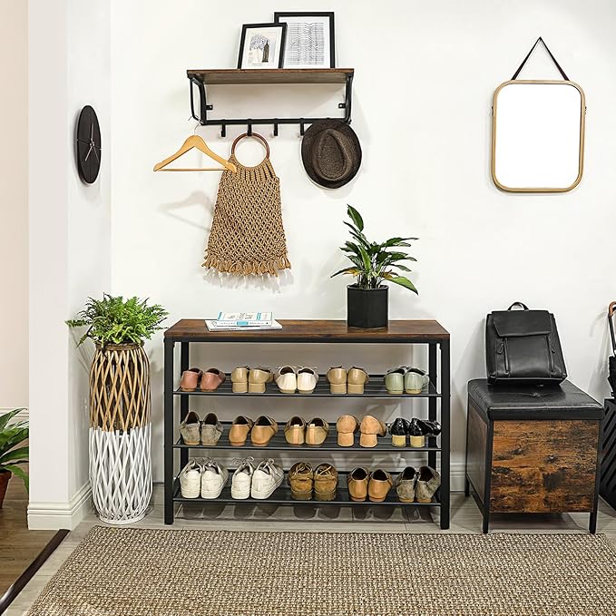 VASAGLE 4 Tier Shoe Rack, Shoe Organizer for Closet, Entryway, 16-20 Pairs of Shoes, Large Shoe Rack Organizer with 3 Metal Mesh Shelves, 11.8 x 39.4 x 28.3 Inches, Rustic Brown and Black ULBS14BX
