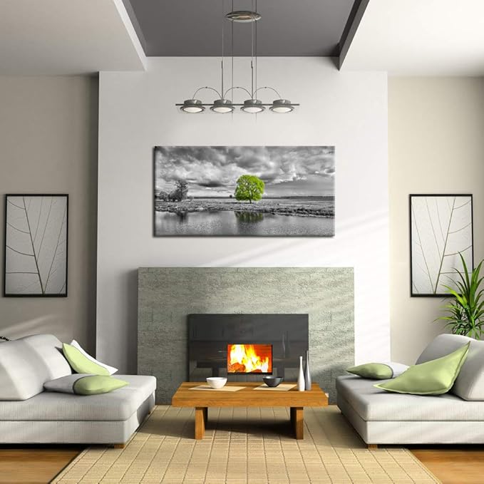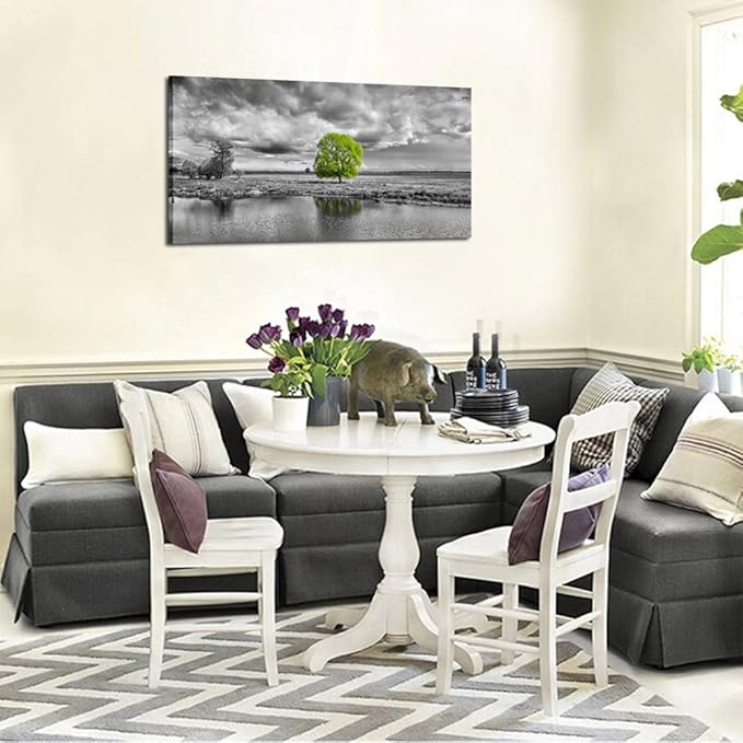 KREATIVE ARTS Canvas Wall Art Paintings Green Tree Landscape in Black and White Modern Giclee Framed Artwork Pictures for Living Room Decoration 40x20inch