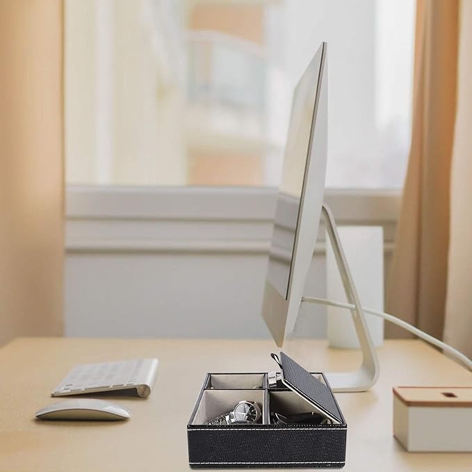 - 【Small Jewelry Stand】 The Multifunctional edc tray measures 10 x 7.2 x 2.09 inches and contains 5 compartments of different sizes. One compartment of jewelry organizer box has a dust cover, which can hold valuable items such as sunglasses or jewelry; The jewelry organizer tray also has a curved compartment that can be used to hold change coins, making it easier to take them. Black jewelry organizer can save desktop space, improve desktop cleanliness, and make life easier.