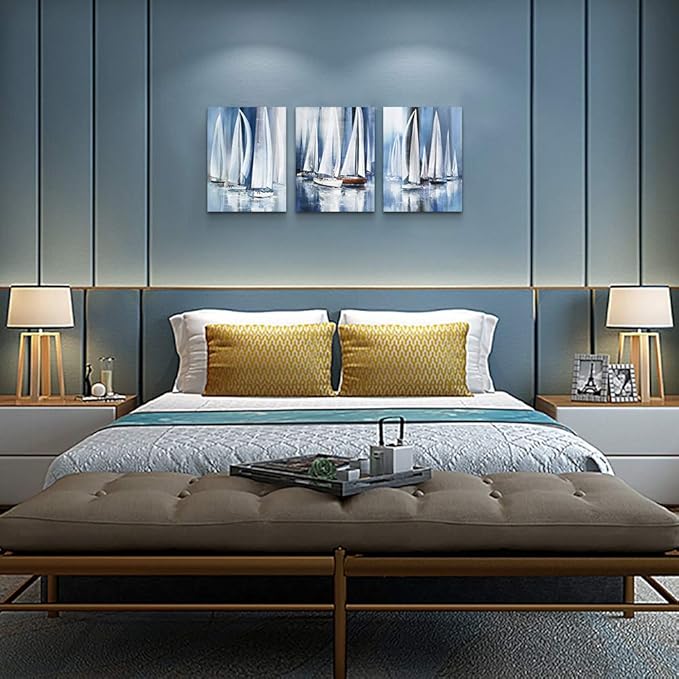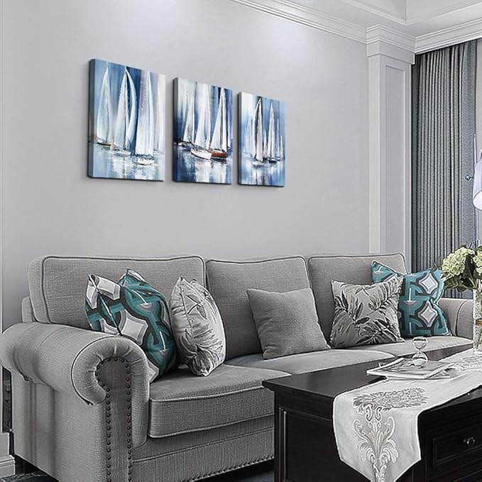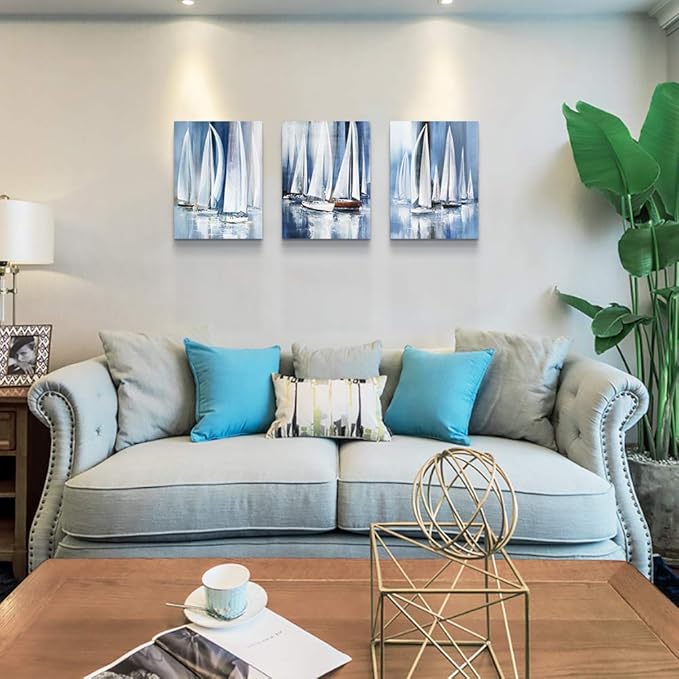 3 Piece Framed canvas wall art for living room bathroom bedroom Wall Art Decor Ocean landscape sailboat abstract Canvas painting Ready to Hang Office Home Decoration sea poster Pictures Wall Artworks