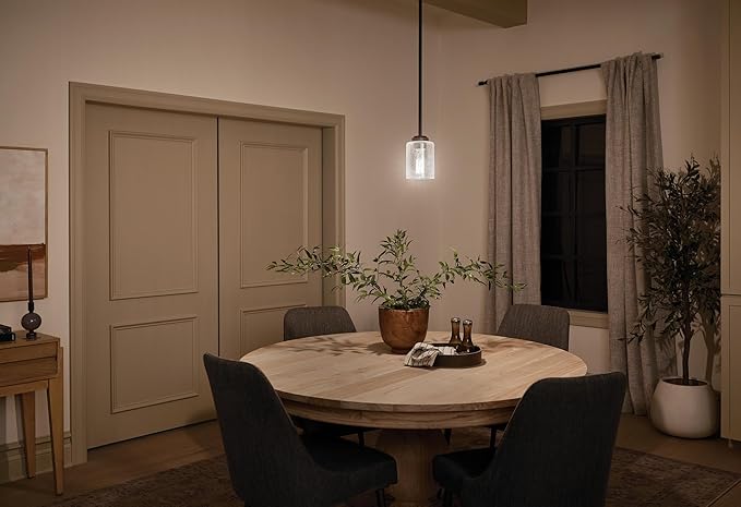 Kichler Winslow 7.5" 1-Light Mini Pendant Light with Clear Seeded Glass in Black for Kitchen, Bar, Laundry Sink, Bar Island (7.5" x 4.25"), 44032BK