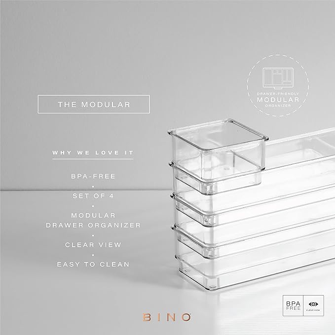 Bino 4-Piece Drawer Bin Set | THE MODULAR | Bathroom & Desk Drawer Organizer Bins - Large