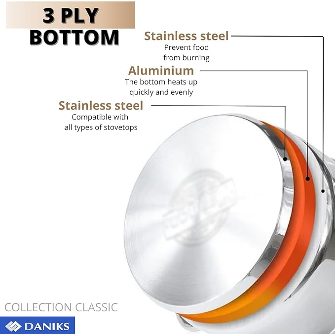 Daniks Classic Stainless Steel Stock Pot with Glass Lid – Induction 4 Quart, Dishwasher Safe, Measuring Scale, For Soup, Pasta, Stew, Silver