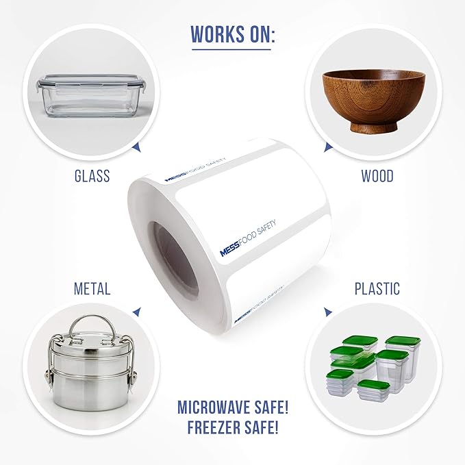 MESS Dissolvable Food Labels, Blank, 1x2 500/Roll - Dissolves in 30 Seconds or Less - Removable Pantry, Meal Prep & Food Storage Labels – Canning & Freezer Use
