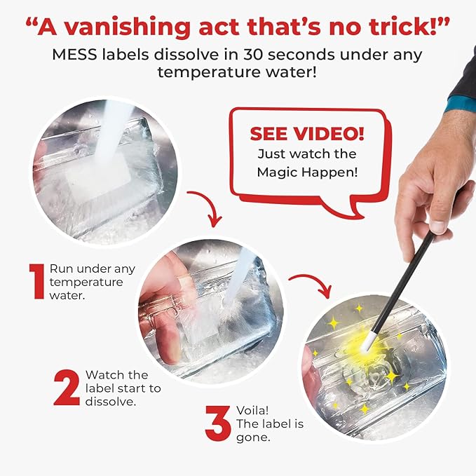 - No More Sticky Residue – Easily wash away your dissolvable labels under any temperature of water. Completely water soluble