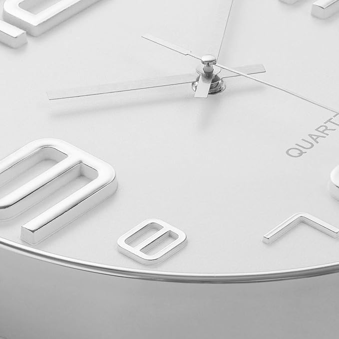 - Special Feature : Ideal for office bathroom kitchen living room bedroom nursery classroom, Large 3D chrome silver numbers, Modern shiny grey frame, Quartz mechanism, Silent non ticking white clock, Sweeping movement Ideal for office bathroom kitchen living room bedroom nursery classroom, Large 3D chrome silver numbers, Modern shiny grey frame, Quartz mechanism, Silent non ticking w… See more
