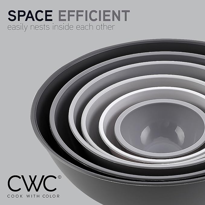 COOK WITH COLOR Plastic Nesting Mixing Bowls Set - 12 Piece includes 6 Prep Bowls and 6 Lids, Microwave Safe (Gray Ombre)