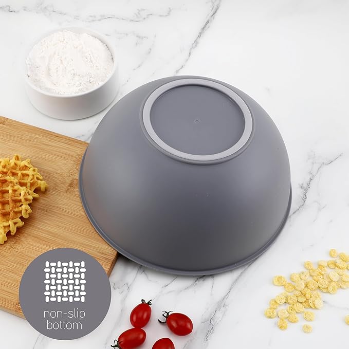- Plastic mixing bowl set made of BPA free durable polypropylene and food safe material; Top rack dishwasher safe, microwave safe and freezer safe