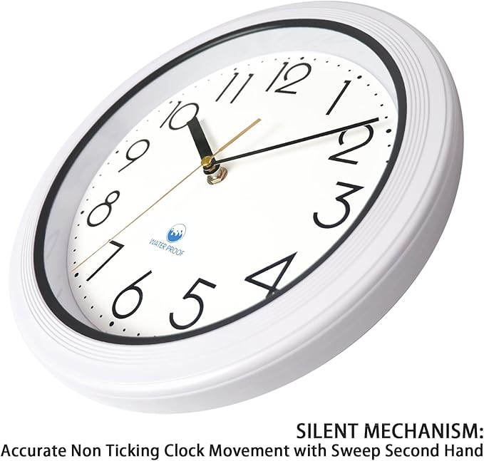 Caysie 11 Inch Sealed Indoor Outdoor Waterproof Wall Clock, Durable Silent Non-Ticking Battery Operated Quality Quartz Round Clock, Wall Decorative for Patio, Pool, Bathroom (White)