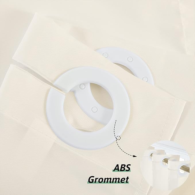 - No Hook Needed: This no hook shower curtain features"Built-In Ring" design that allows for quick and easy installation in a second. This bathroom shower curtain fabric adopts a single-layer design without annoying and messy hooks