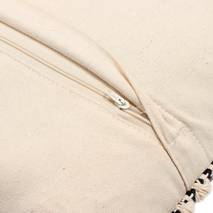 - Handloom Tufted Accents: Our pillow covers feature handloom dhurrie tufted accents in the front adding texture and dimension to their boho design, the back is made of plain cotton canvas fabric. The woven intricate details create a truly unique and artistic piece for your home.