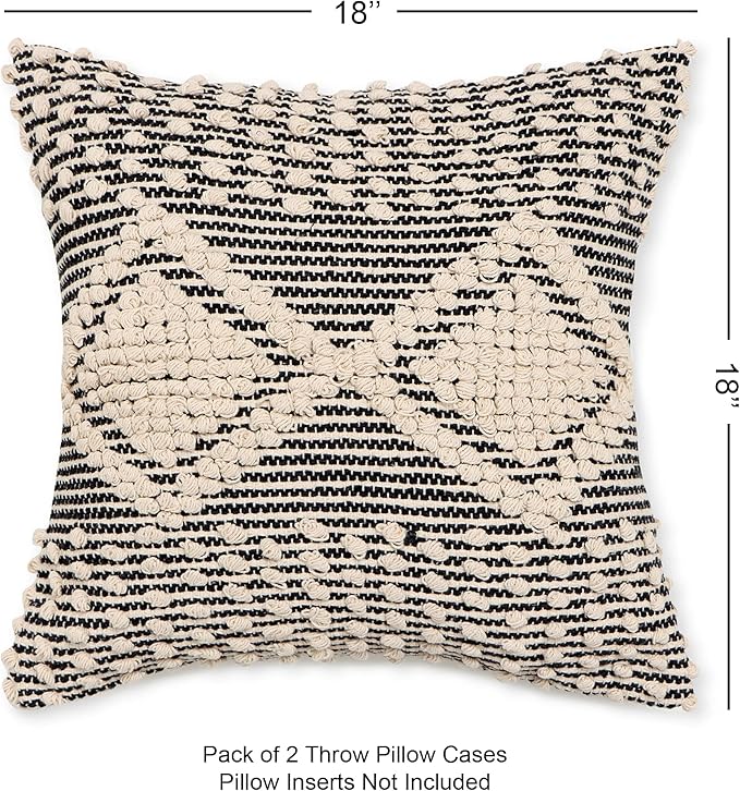 REDEARTH · Handmade Boho Throw Pillow Covers - Bohemian Chic Farmhouse Style - Accent Woven Indoor and Outdoor Cushion Cases for Couch - Bed - Chair - Sofa - Benches – Set of 2-18"x18" - Black