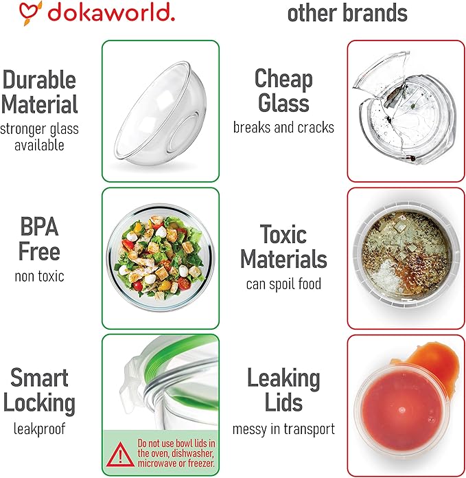 - SAFE: Upgrade your pantry with a recyclable, 100% BPA-free glass bowl set with lids. Order our glass storage bowls with confidence!