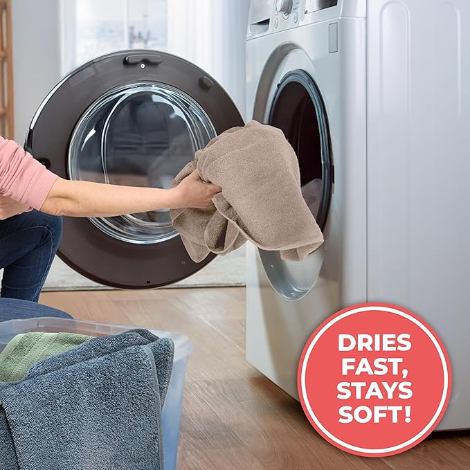 - [ SET INCLUDES ]: Our towel set includes 2 x Bath Towels (27x54 inches), 2 x Hand Towels (16x28 inches), 2 x Washcloths (13x13 inches). These sizes of our bathroom towels set are both functional and perfect for everyday usage and give your bathrooms modern look with its twelve color options. Best towels for bathroom and our bath towels set are also suitable for gym, beach, spa, hotel, travel and more.