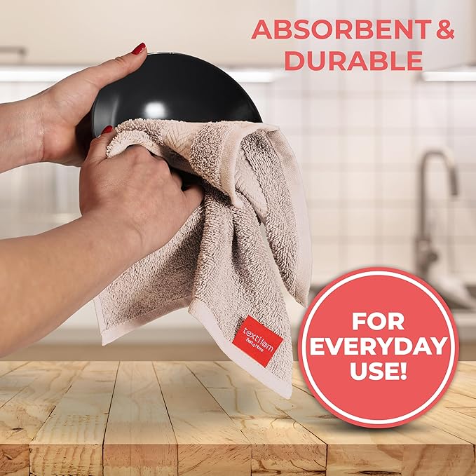 TEXTILOM 100% Turkish Cotton 6 Pcs Bath Towel Set, Luxury Bath Towels for Bathroom, Soft & Absorbent Bathroom Towels Set (2 Bathtowels, 2 Hand Towels, 2 Washcloths)- Beige