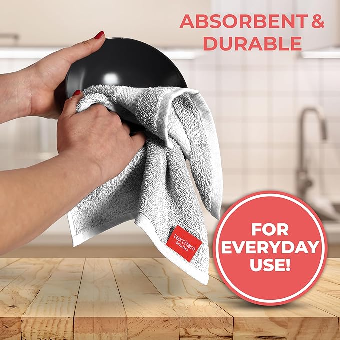TEXTILOM 100% Turkish Cotton 6 Pcs Luxury Bath Towels, Soft & Absorbent Bathroom Towels Set (2 Bath Towel, 2 Hand Towel, 2 Washcloths)- Light Grey