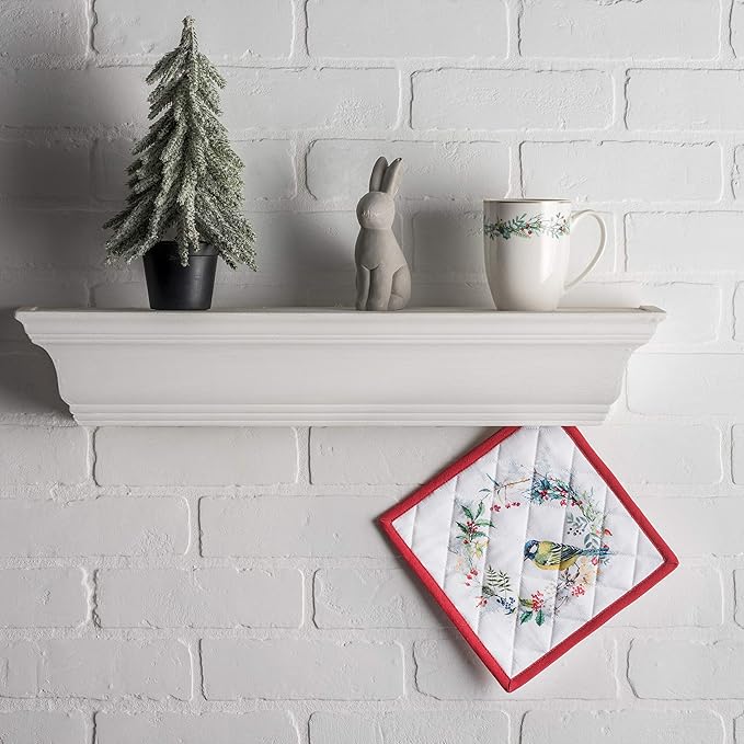 Maison d' Hermine Pot Holders Set 100% Cotton Heat Resistant Potholders 8" x 8" Hot Pads with Loop for Thanksgiving Christmas Decorations BBQ Cooking Baking Handling Hot Pans (Pack of 2, Morzine)