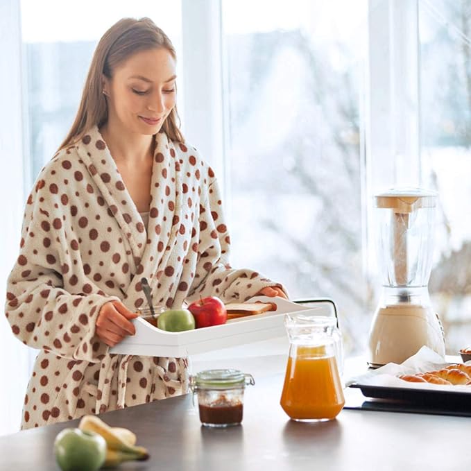 Breakfast Tray Table with Folding Legs Serving Tray Bamboo Dinner Trays for Platter Laptop Desk Bed Table Kitchen Serving Tray Snack Trays Large Size (White Large)