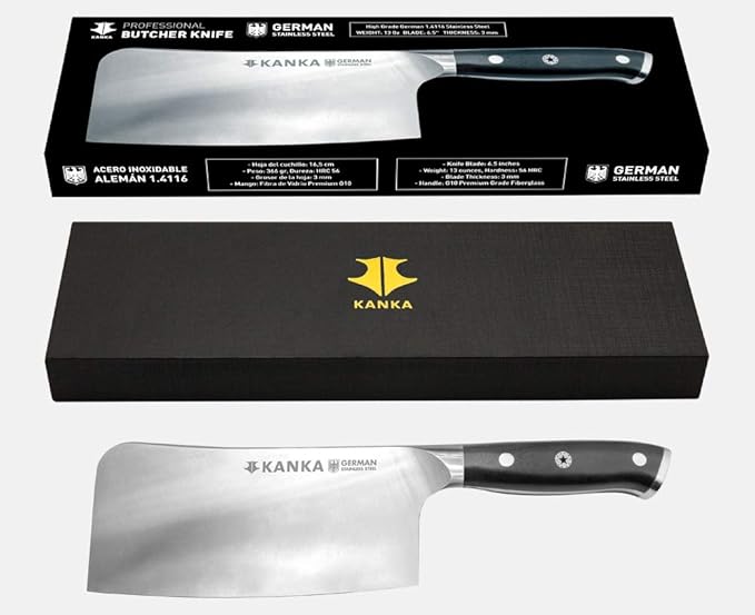 KANKA 7 inch Meat Cleaver Knife – Professional Knife for BBQ & Kitchen, Ergonomic Handle Stainless Steel Butcher for Meat, Fish & Bone Cutting - Heavy Duty Chef Chopper Razor Sharp & Rust-Resistant
