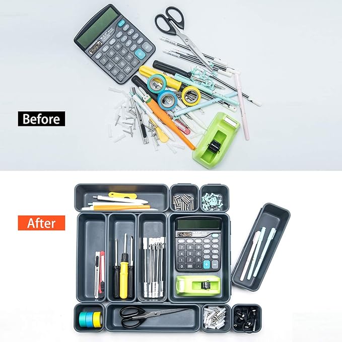 - Widely Used: Organizer bins are perfect for dresser, bathroom drawer, kitchen drawer, office desk etc. Easy to find your things when you need.