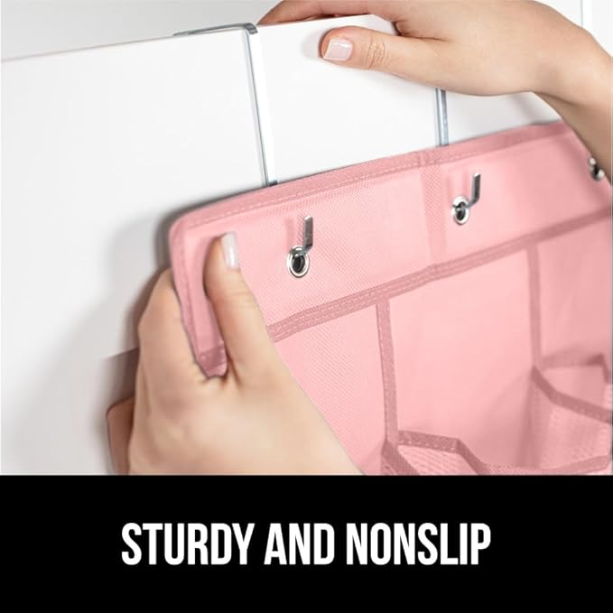 GORILLA GRIP Over the Door Shoe Organizer, 24 Large Breathable Mesh Pockets, Space Saving Hanging Storage Holder, Closet Rack Hanger Holds Up to 40 lbs, Hangs on Closets for Shoes, Accessories, Pink