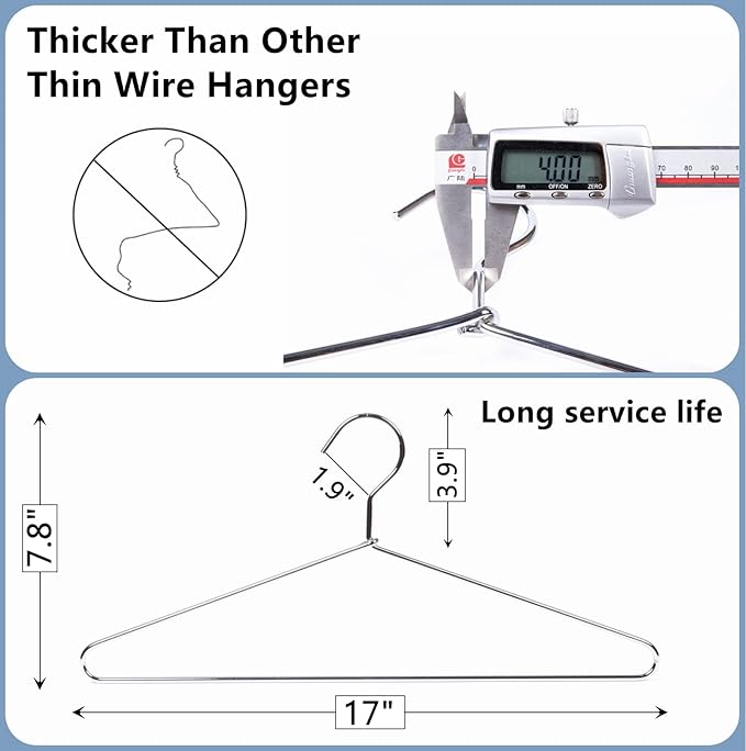 - 【Durable & Sturdy】Our heavy duty metal hangers are made of 100% stainless steel with features of anti-rust, anti-deformation and anti-fading. With strongly construction and enough durable to steadily hold heavy articles of clothing in your closet. Hold up to 20LB.