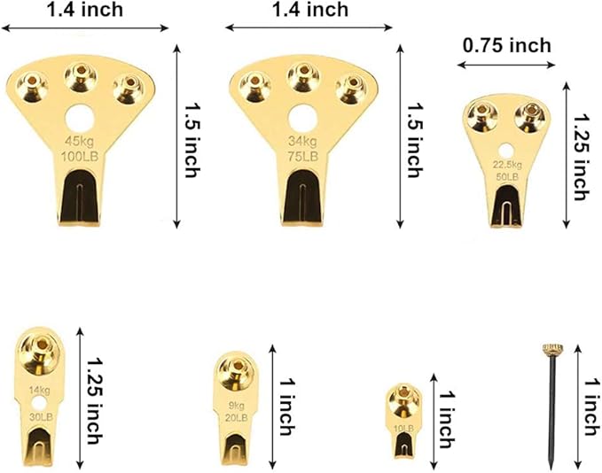 - 【Multifunctional picture hanging kit】 Includes 10lb, 20lb, 30lb, 50lb, 75lb, and 100lb photo hangers, each with a total of 125 pieces, which can meet your different needs from small pictures to heavier paintings.