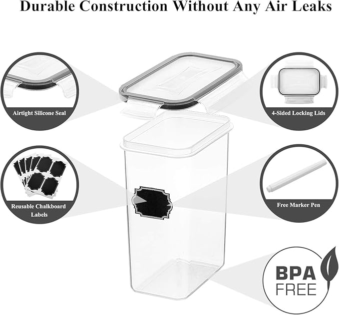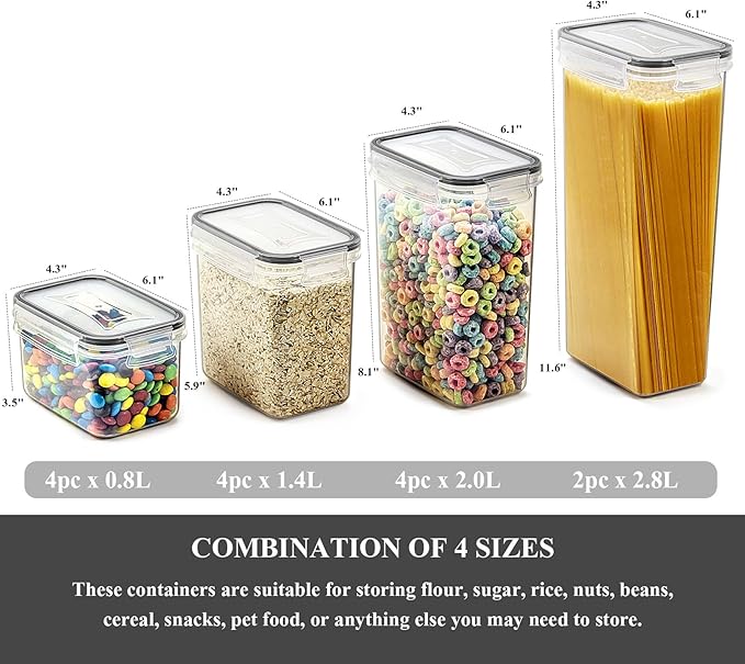 - Airtight Seal Lids Keep Food Fresh: Each pantry storage container features an airtight 4 sided-locking system resulting in an airtight seal, keeping your cereal super fresh, help you get prolonged food storage