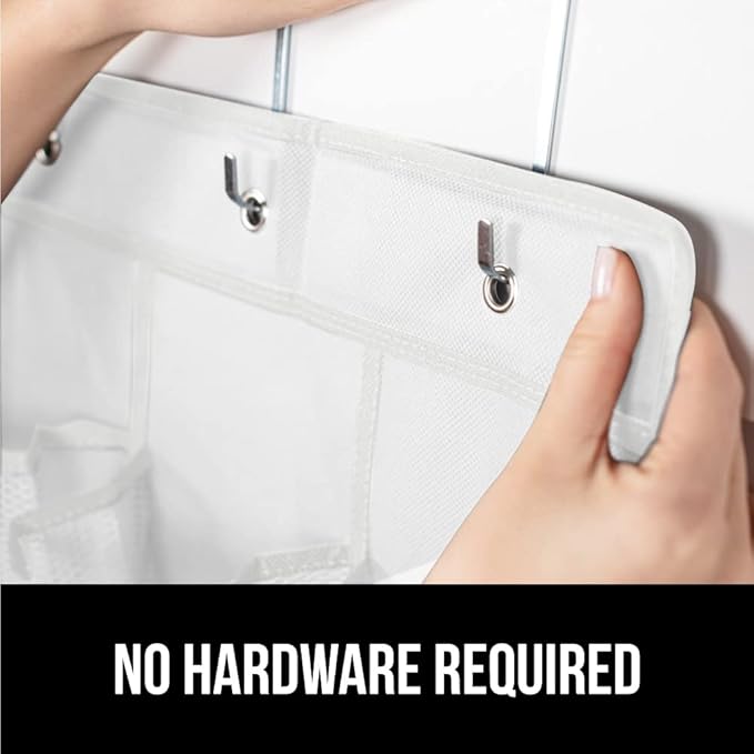 GORILLA GRIP Over the Door Shoe Organizer, 24 Large Breathable Mesh Pockets, Space Saving Hanging Storage Holder, Closet Rack Hanger Holds Up to 40 lbs, Hangs on Closets for Shoes, Accessories, White