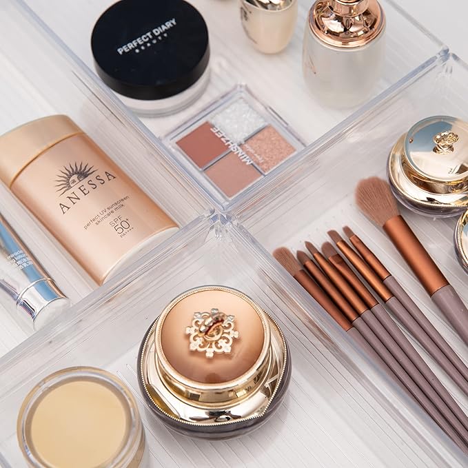 Backerysupply Clear Plastic Drawer Organizer Tray for Vanity Cabinet (9"×6"×2" Set of 4) For Office Bathroom Makeup Drawers
